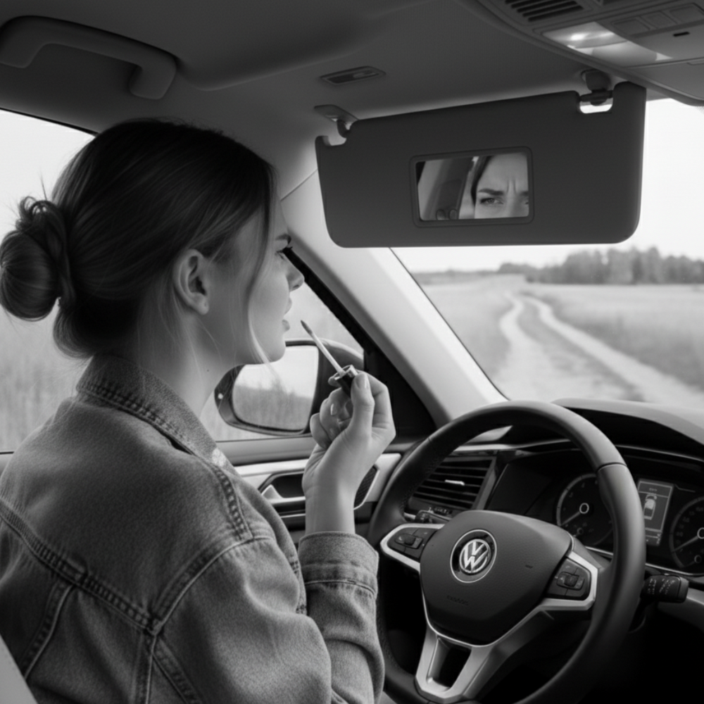 Twierdzi, że to lusterko znacznie ułatwia poprawki makijażu w samochodzie.