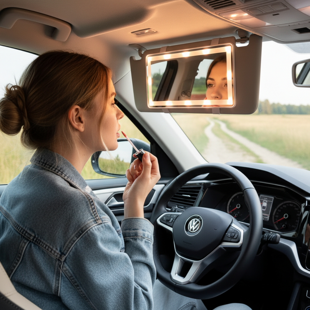 Niezależnie od tego, czy spieszysz się do pracy, na spotkanie czy na wieczorne wyjście, lusterko LED do makijażu w samochodzie pozwala Ci zawsze wyglądać świetnie bez stresu. Montuje się je bezpośrednio na osłonie przeciwsłonecznej, daje idealne światło bez cieni, a Ty w minutę wyglądasz nienagannie i możesz ruszać w dalszą drogę.